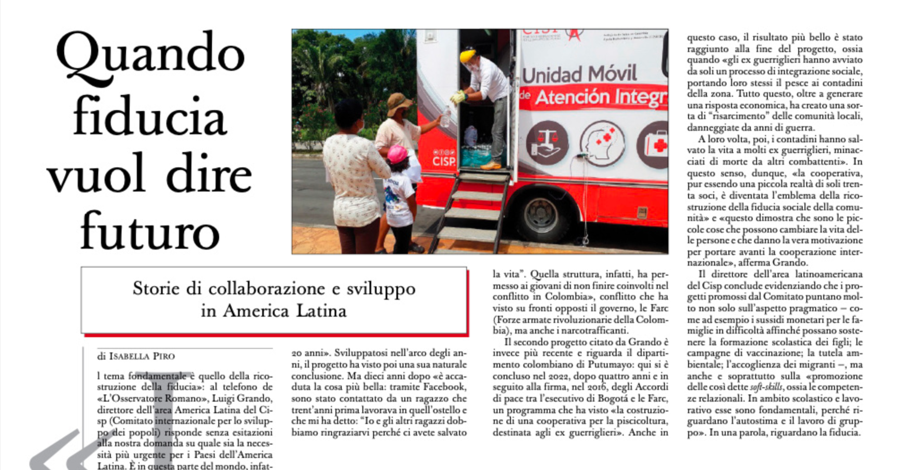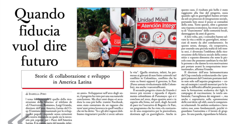 Un artículo sobre el trabajo del CISP en América Latina, publicado por el periódico italiano L'Osservatore Romano (en italiano).